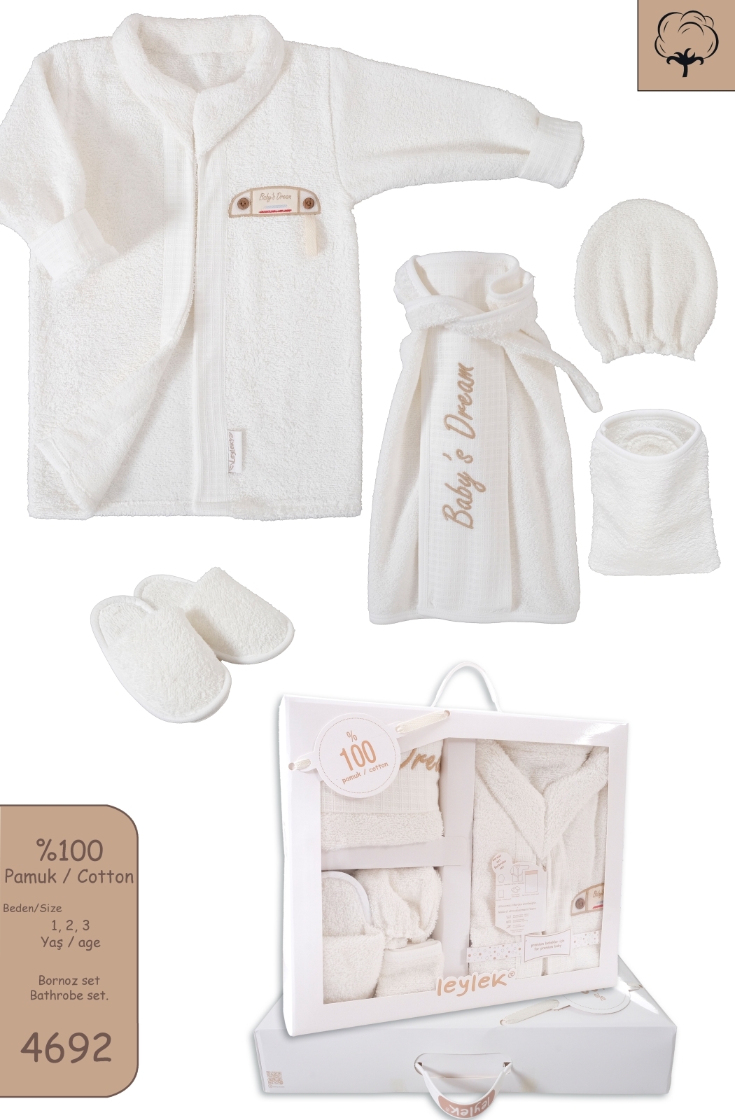 UNISEX 3/3 YAŞ BORNOZ SET EKRU DÜĞMELİ